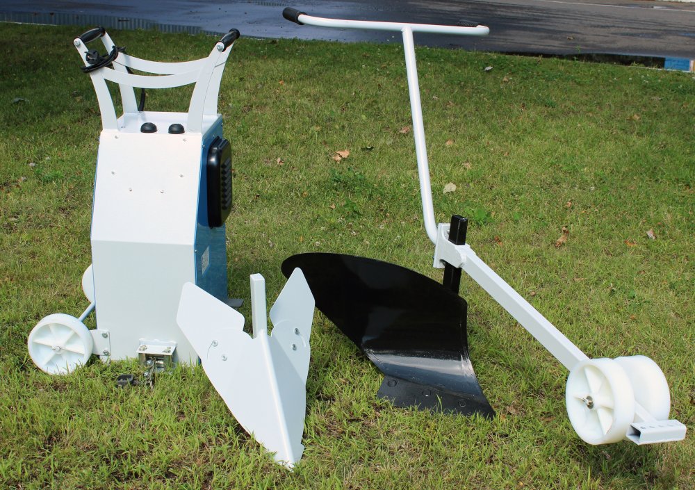 The device can be purchased for 24,000 rubles. It will be useful to many owners in personal plots. The unit will do its job perfectly. If the garden is of moderate size, you can not dig it manually. It is necessary to install an automatic winch at the edges of the field and attach a plow to the cable. The product is equipped with special wheels for movement. This is very important, since the entire structure weighs about 50 kg.