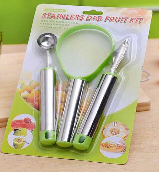 Made in China, Stainless Dig Fruit is made in China with only three items, but despite this, they can be used to carve many different elements to decorate dishes. in order to cut something, the user does not need much effort, because due to their sharpness, the blades easily cut the surface of the products. For production, high-quality stainless steel is used, which is resistant to oxidation and physical influences.