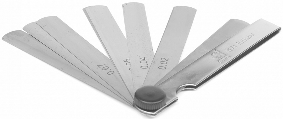 In order to measure the gap between two surfaces, one or more calibration plates from the kit must be inserted into it in turn or simultaneously. As soon as they completely fill the space, their thickness will be equal to its distance. At the same time, they do not have free play, and they should not fall through, but move with little effort.