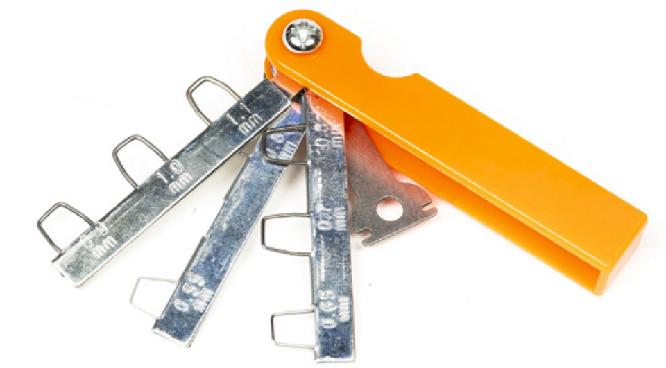 A domestic-made tool for adjusting automotive engine spark plugs. It is made according to a special form for more convenient measurements in the range from 0.55 to 1.1 mm. The set contains 8 steel elements 7 cm long. The safety bracket is made of durable orange plastic. The weight of the packaged goods is 40 grams. The manufacturer gives a 1 year warranty.