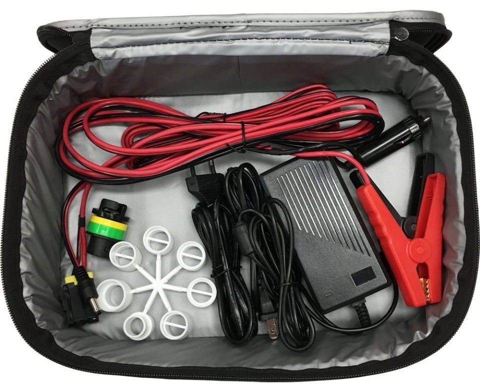 This device is new for this season. Unit with built-in battery. It takes eight to ten hours to fully charge. It is convenient for travel and trips, as it is compact and light in weight. The device is charged from the car's cigarette lighter.