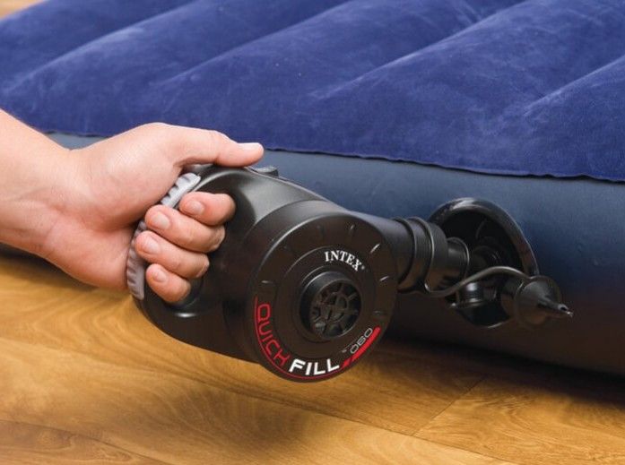 The electric pump, the body of which is made of durable plastic. It can be charged at home from the electrical network or from the car's cigarette lighter. Convenient, lightweight and compact, suitable for inflating various inflatable things.