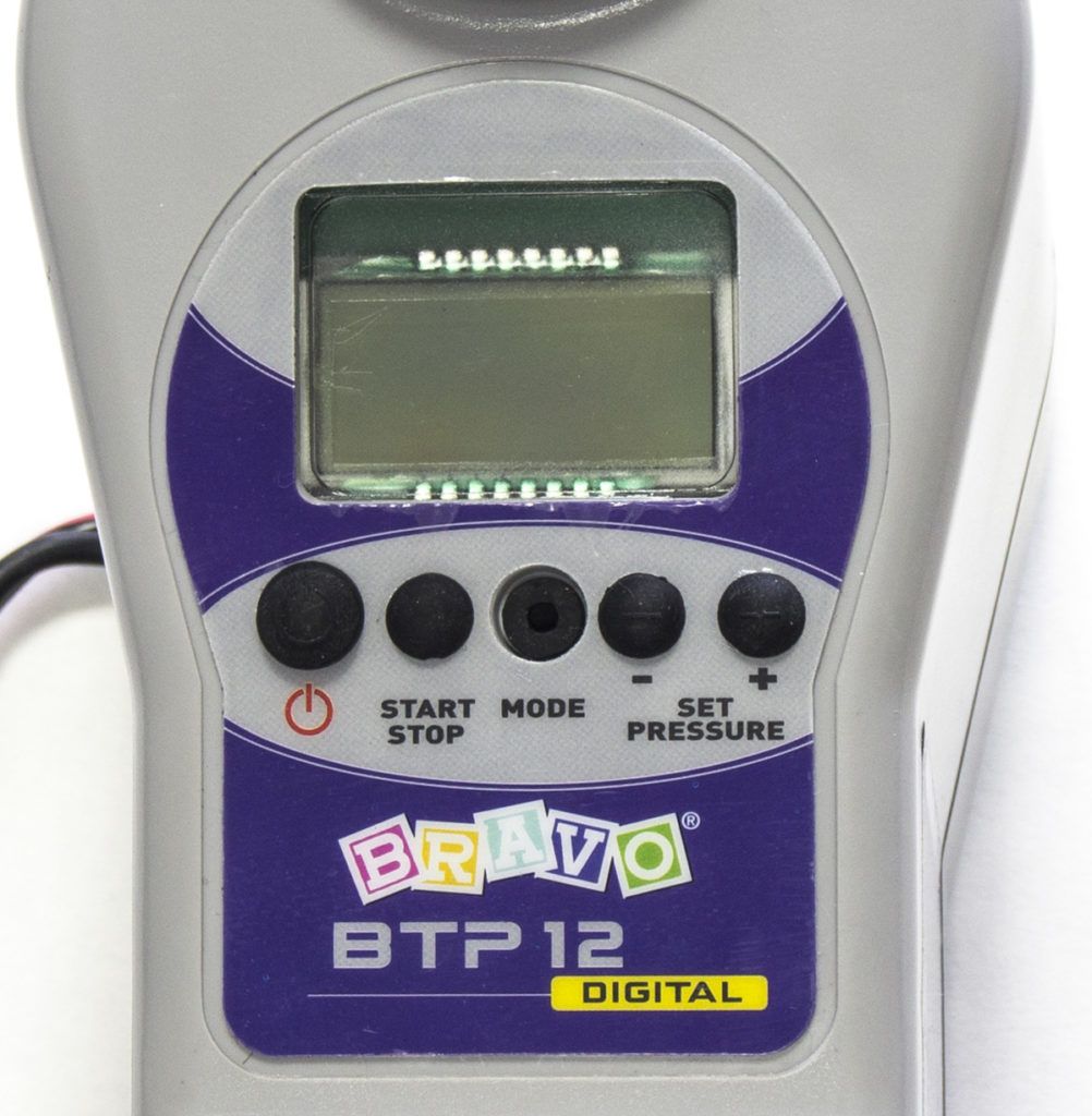 The device with a digital display, pressure - up to 1000 Mbar. It is portable and battery operated.
