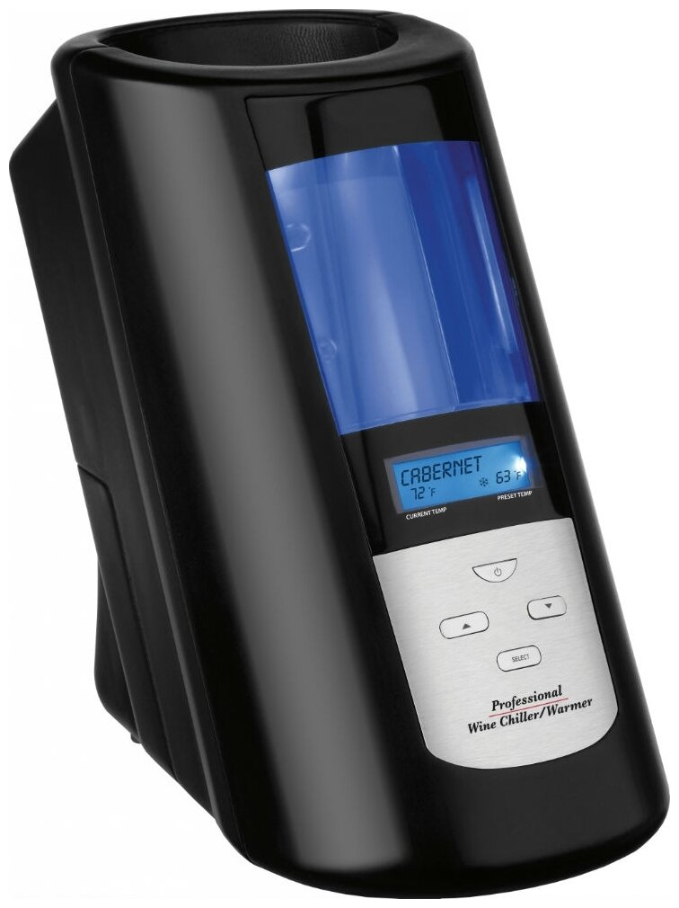 A professional device, also suitable for home use. The temperature range is programmable from +5 to +18 degrees. Size 18 x 13 x 24 cm. Suitable for one bottle up to 9 cm in diameter.