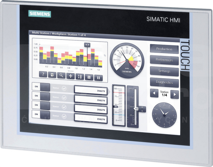 Multifunctional device with widescreen full touch display. Provides output of sixteen million colors. Only ships with the latest versions of Windows CE. The control uses standard PROFINET and MPI/PROFIBUS DP interfaces that are compatible with many third-party controllers.The software is open source. The device has its own 12 MB flash memory.