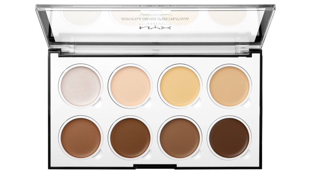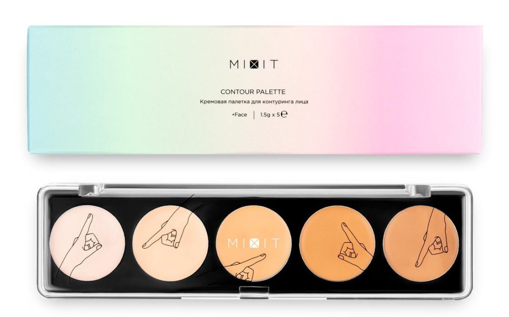 Inexpensive cream cosmetics are ideal for contouring. The set includes 5 colors that can be used individually or mixed to get the desired shades. The manufacturer offers kits for dark and light skin types. You can apply products pointwise or with a brush to the necessary areas of the face.