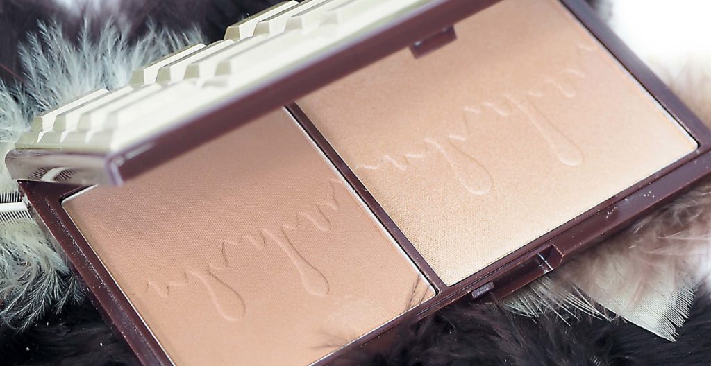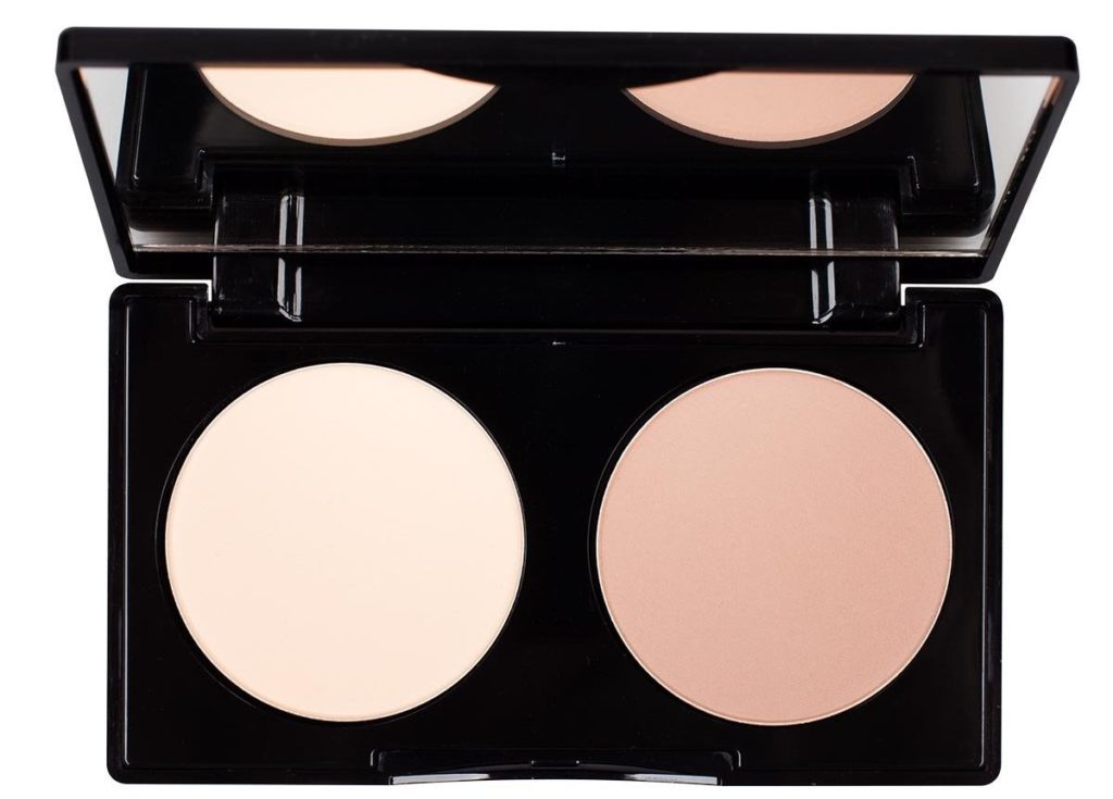 In order to give the skin a radiant look, you can use two shades with the addition of small shiny particles. This set is universal, and allows you to work with different skin tones.