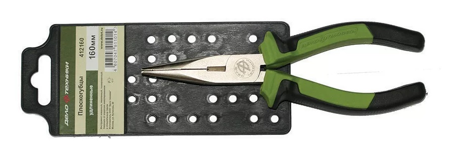 Chinese-made mounting pliers are able to get into the farthest corners of objects, thanks to thin curved ends. The frequent narrow notches on the jaws handle thin wire, but are not suitable for very soft metal. Designed for domestic use, not for service use. The service life is determined by the frequency of use. Small size: 16 mm, weight: 230 g. Pale green plastic handles. Price: from 580 rubles.