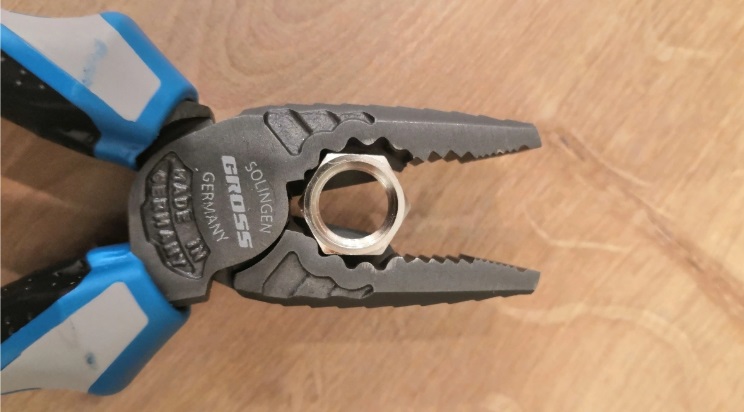 Double lever pliers are made of niobium alloyed steel 58 HRC. Ergonomic insulated, petrol-resistant, rubber-covered handles are adapted for comfortable carpentry, plumbing, and household work. Are capable to clamp flat, and also a cylindrical form of a detail, wires. Produced in Germany. Product length - 20 cm, weight - about 270 g. Price - 1432 rubles. The color of the base is blue, on the sides of the handle is light green.
