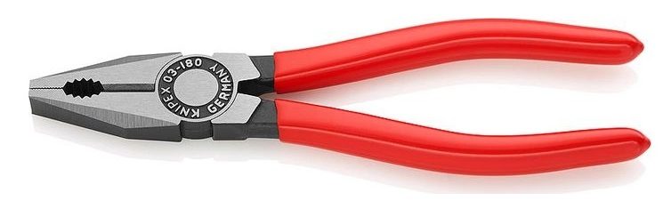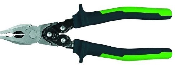Combination pliers from the German manufacturer Knipex are designed to capture, hold large and medium thickness wire, flat and round metal objects. The working part is made of high-strength hardened steel to a hardness of about 60 HRC, which ensures tight clamping, long service life. The main purpose is for installation work. Relatively small weight: 120 g, with a product length of 18.5 cm. The handles are plastic, plain red. Cost: from 1599 rubles.