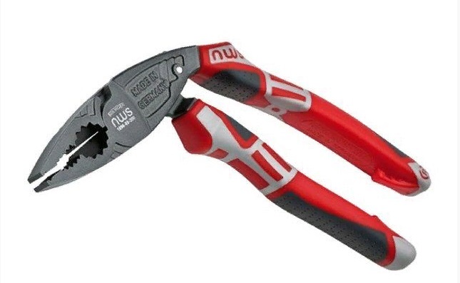 The NWS 1096-69-200 curved head combination pliers from the German company ErgoCombi are made of forged, oil-treated steel and can cut wire of any hardness. Asymmetrical work surface holds round objects. The cutting edges are hardened, which increases the service life of up to 1 year of continuous use. The ergonomic head is turned for better penetration into hard-to-reach places, the device is indispensable for a locksmith. Comfortable handles have a multi-component coating, without much effort they work on compression - unfastening. Size: 20 cm, weight: 280 g. When ordering online, it is possible to receive an item of a different color from the declared red color. Price: 1920 rubles.