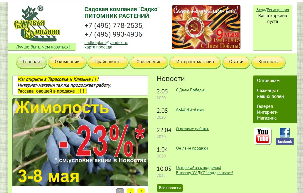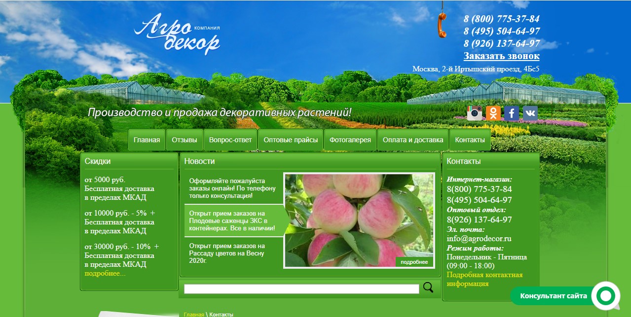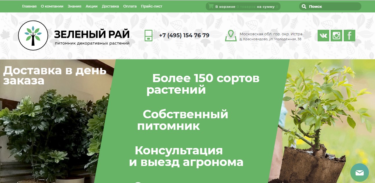 One of the largest metropolitan nurseries, pleasing gardeners with its quality products. According to the company, sales coverage extends to more than 500 small settlements in Moscow and the Moscow region. Among those who actively use the services of this company, there are eminent stars of show business, whose video reviews can be found on the site.