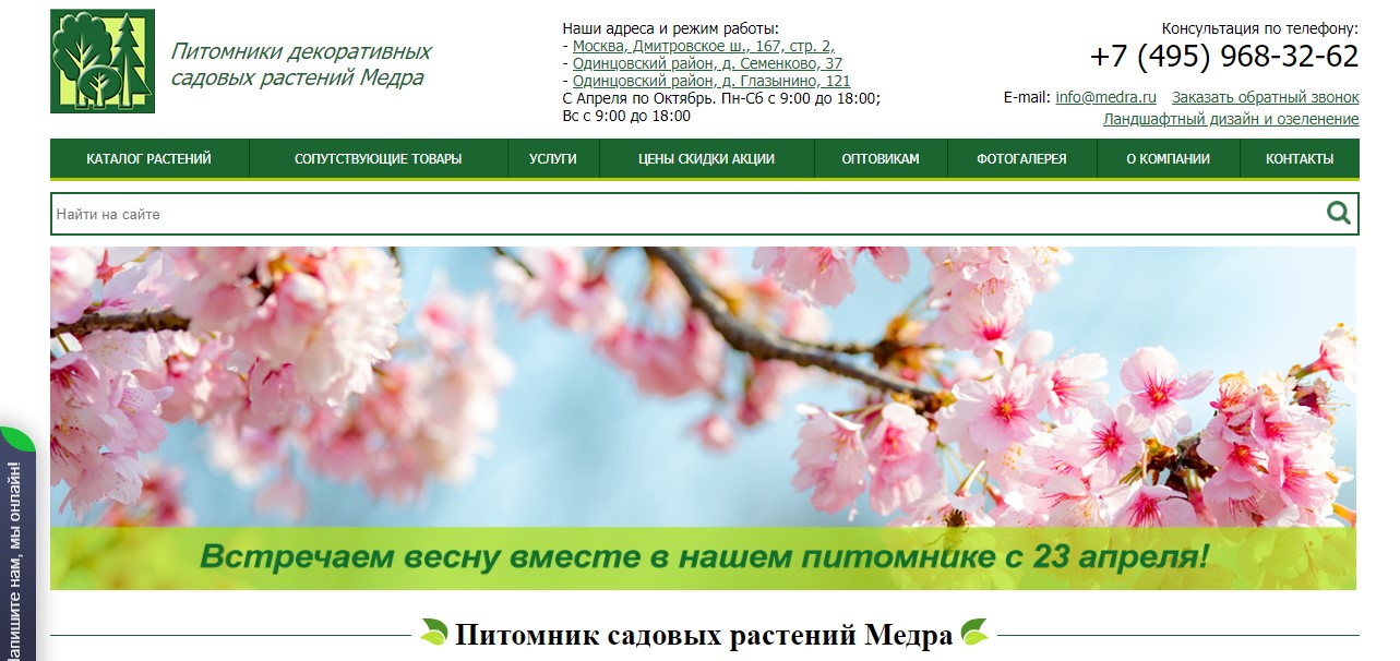 The Moscow company "Medra" has been growing seedlings for 20 years in garden centers and a nursery. Buyers can watch the process of caring for plants live. The organization has grown and sold more than 1.5 million planting materials: trees, shrubs, flowers. The range is so rich that it impresses the most sophisticated gardening enthusiasts.