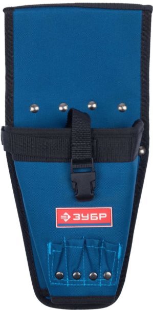 Another representative of the Zubr is a mobile holster for a screwdriver with a set of compartments for interchangeable tooling. Like the previous model, it is made of durable and lightweight nylon-based material, which guarantees a long life and comfortable operation. 4 compartments are allocated for storage of replaceable elements, in which the master will be able to transfer bits and drills for a screwdriver. Special buttonhole to provide the strongest fastening in a tool holster.