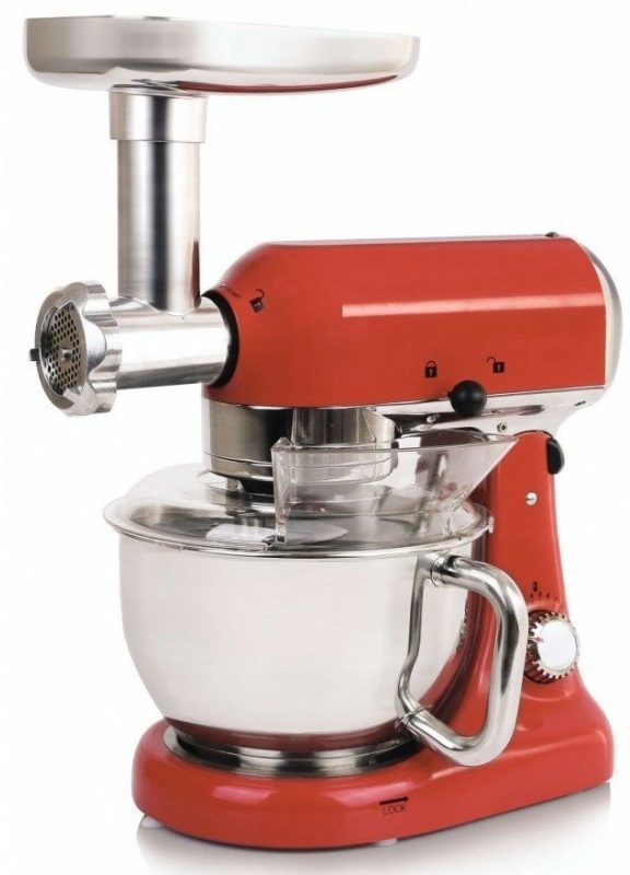 Judging by how customers respond to this model, this is one of the most practical planetary mixers with a meat grinder function. The excellent quality of the batch allows you to put a solid five. Small dimensions allow you to occupy a minimum area. Pays for itself quickly due to the low price.