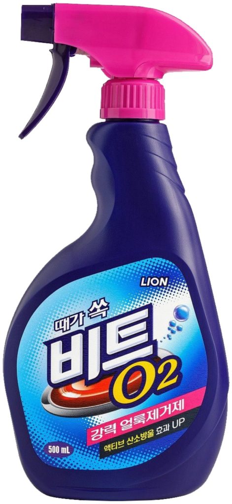 This oxygen stain remover comes in the form of an aerosol foam. It copes well with stains of various origins: from red wine, chocolate, juice, tea, herbs, etc. The composition is safe for cotton and synthetic materials. Can be used for white and colored items.