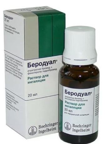Clear solution in 20 ml glass vials. The main active substance is ipratropium bromide. The drug with the function of blocking bronchial smooth muscle receptors allows you to restore lung activity 15 minutes after the procedure.For one inhalation, it is required to dilute 1-2 drops of the solution in 3-4 ml of saline. It can be used by adults and children to get rid of the symptoms of bronchitis and pneumonia without the threat of disruption of the cardiovascular system.