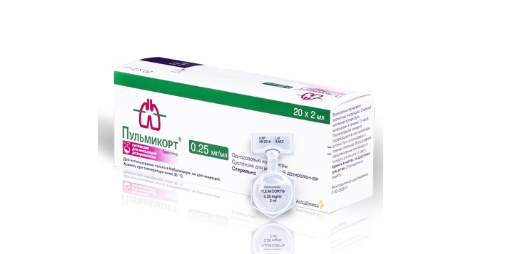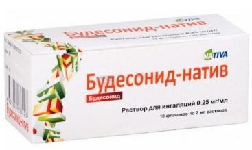 Prescription decongestant medication that enhances the activity of the main therapy for pulmonary diseases. Belongs to the group of glucocorticosteroids. The domestic analogue of the Swedish drug Pulmicort contains the active substance budesonide. It is prescribed in an individual dosage for people over 16 years old for the treatment of bronchial asthma and COPD (chronic obstructive pulmonary disease). The solution is contraindicated for children. Inhalations are carried out with a nebulizer using a mask or mouthpiece. Each vial contains a single dose. After the procedure, it is recommended to rinse your mouth thoroughly with water. One package contains 10 vials of 2 ml with rubber stoppers and aluminum caps. At the beginning of the use of the drug, there may be a slight deterioration in the condition, frequent bronchospasms. However, after several procedures, the dynamics improves, since all the properties of the active substance are preserved and begin to act.