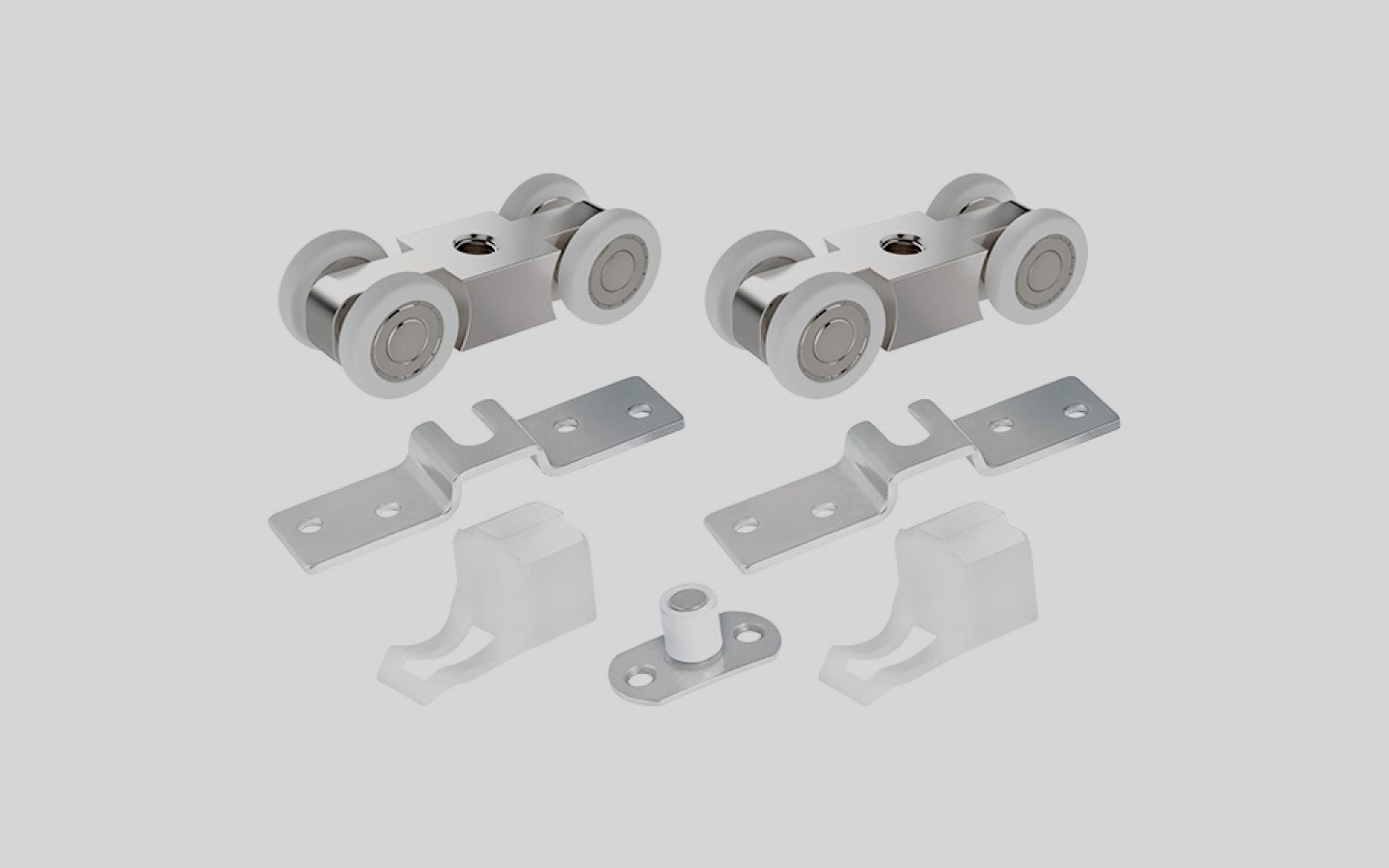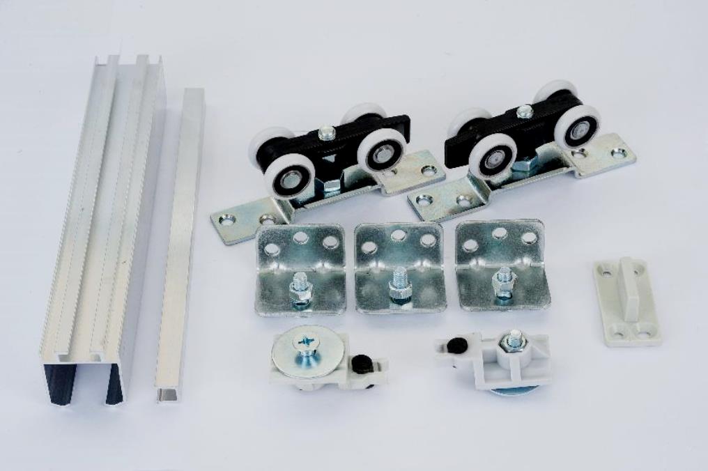 The kit includes rollers, bottom and top guides. Suitable for installing doors whose weight does not exceed 100 kg. In the manufacture of wheels, rubberized plastic is used. The wheel is equipped with a ball bearing. Carriage made of zinc-aluminum alloy. The thickness of the canvas should not exceed 23 mm. The lower floor component is not provided. They provide a quiet ride, work almost silently. If the question is which product is better to buy for non-standard partitions, pay attention to this model.A budget option, for the installation of which you should not contact specialists.