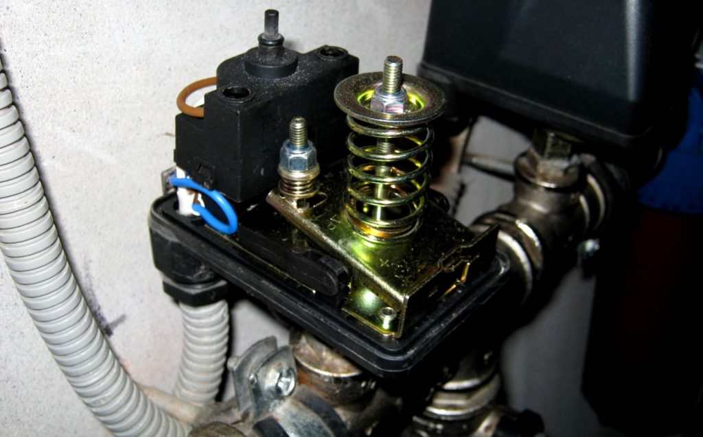 To fix the unit, a spring pressure group is used in the structure. The contact closes when the minimum pressure is reached. After that, it switches on automatically. At the moment when the maximum coefficient (set by the user) is reached, the pumping unit will turn off, as the contacts will open. The design is equipped with special adjustment mechanisms that allow you to manually adjust the value.