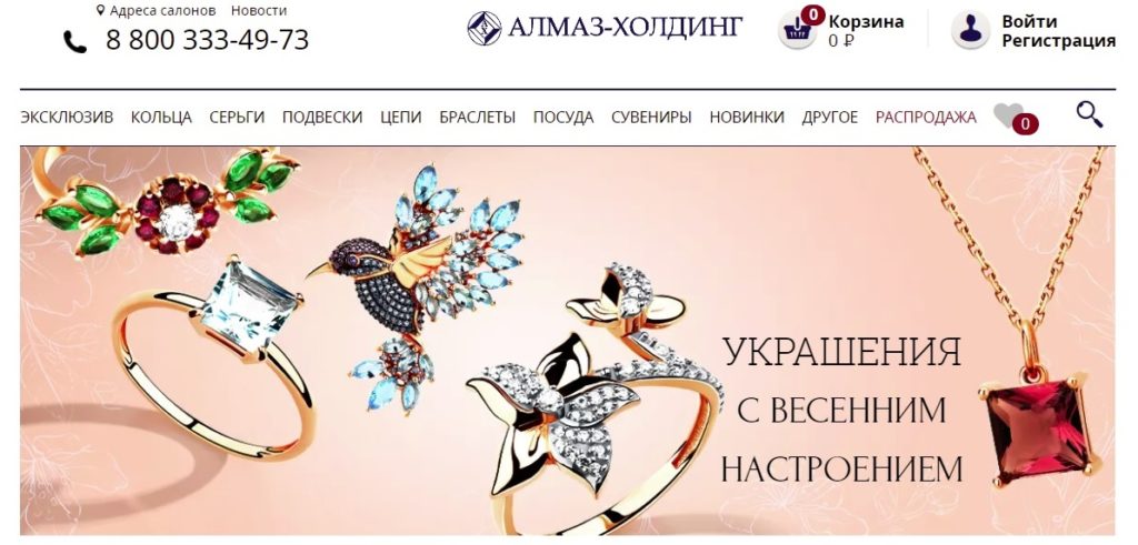 Founded in 1993, the company has a network of over 200 outlets in 118 Russian cities. The quality of the created jewelry is confirmed not only by twenty years of rich experience and quality certificates, but also by the state verification of each model. Almaz-Holding is one of the largest Russian companies whose specialists create jewelry based on centuries-old traditions of jewelry craftsmanship, successfully combining them with the advanced capabilities of modern production. Here jewelry is made from silver, gold, platinum, as well as unique bimetal items. As for stones, natural precious and semi-precious stones are used here, as well as ornamental and synthetic stone. The brand also owns the Symbol of Faith online store, which presents to the consumer a rich variety of products on Orthodox themes: pectoral crosses, icons, book frames and church utensils.