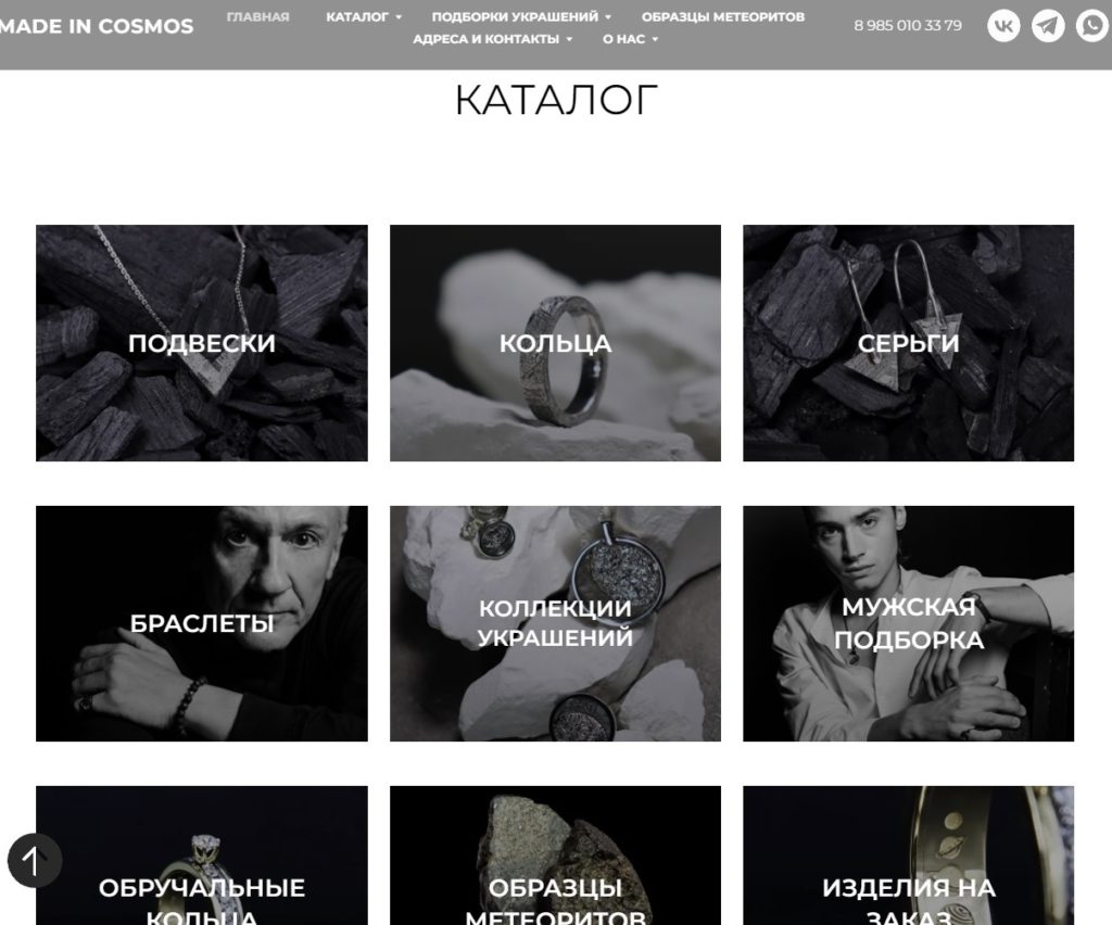 In addition to classic rings, pendants and bracelets for women and men, you can order interior items and independent samples of meteorites on the brand's website.