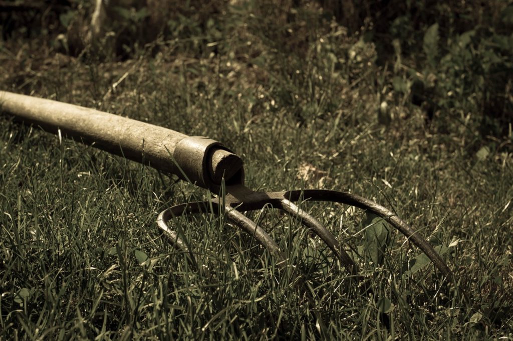 This product is a four-horned fork with a welded structure. With their help, you can easily scatter manure over the beds, as well as clean mowed grass or make hay.