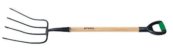 This product has 4 teeth. The width of the working part reaches 22 cm, thanks to which such an aggregate is convenient when working with compost or manure. The working part is made of stainless steel, it does the tool reliable and practical. Even with frequent explantation of such pitchforks, they will serve their owner for a long time.