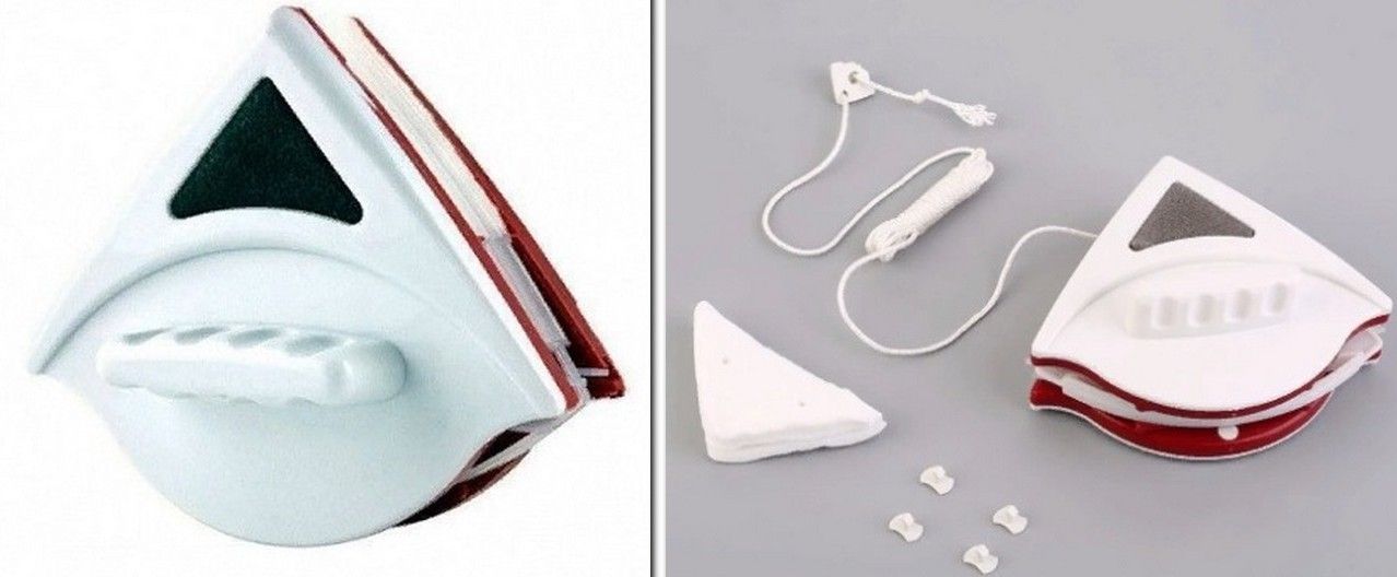 The magnetic design consists of two parts: the outer half is for cleaning glass from the outside, the inner half is for washing windows in the room. The structure of each half: