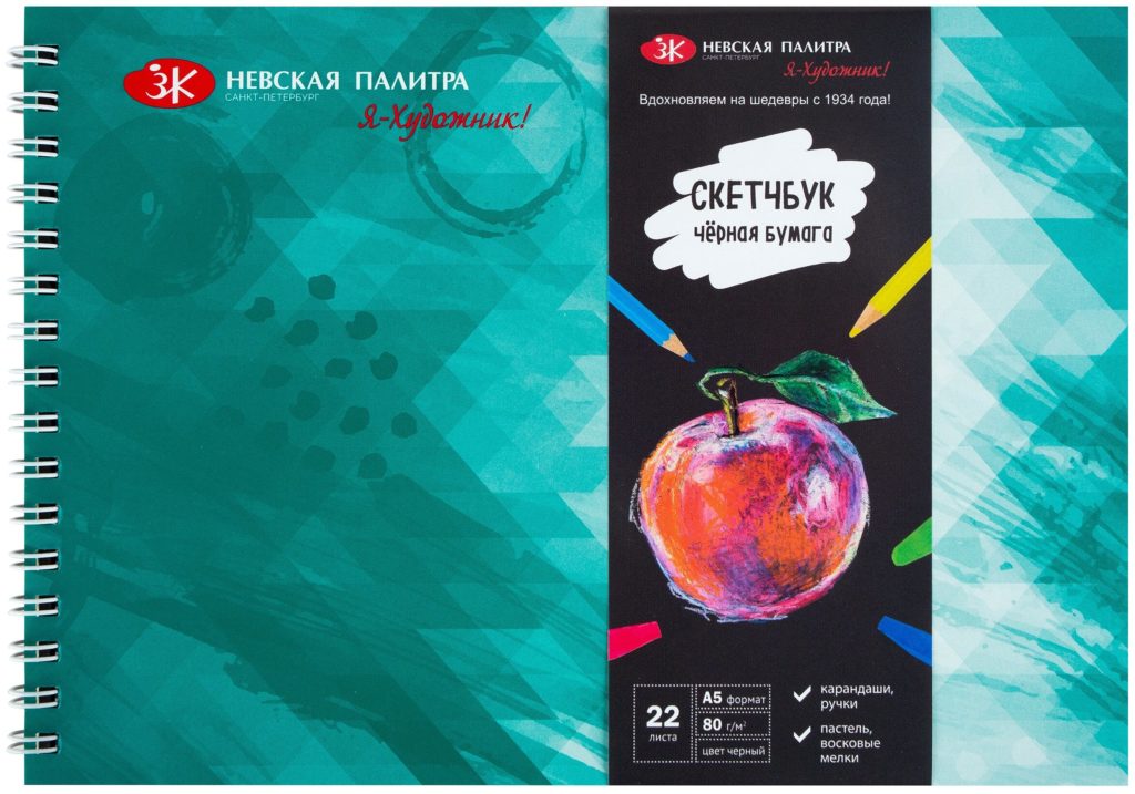 This sketchbook is attractive because the sheets in it are not the usual light shade, but black.The paper weight is not too high, only 80 g/m², the texture is rough. Suitable for graphic sketches with dry materials, including colored pencils, pastels, crayons, liners, capillary and gel pens.