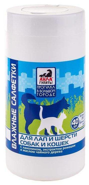 Means for care of paws of cats and dogs. Impregnation has a hypoallergenic pH, the material is dense, has a large size. Suitable for different breeds, they can wipe their paws and hair even while walking. Suitable for use in the prevention of fungal diseases. The package contains 40 wipes, enough for about a month of use. Average price: 273 rubles.