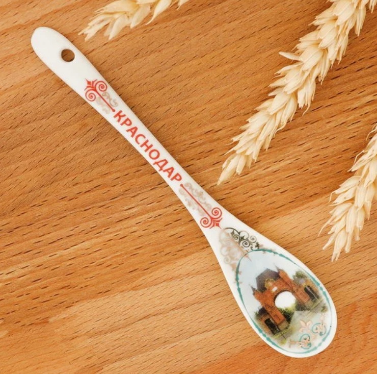 There are matryoshka spoons that are customary to take with you abroad as a souvenir from Russia. Ceramic spoon products with memorable embossing and sights of tourist cities are brought from travels as a reminder of a pleasant vacation.