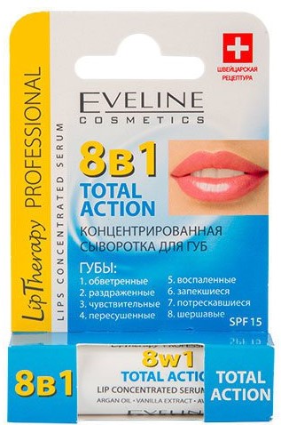 Those who are considering the “cheap and cheerful” option should pay attention to Lip Therapy moisturizing elixir from the cosmetic brand Eveline.