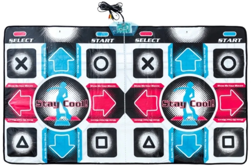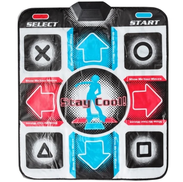 The principle of operation of the dance mat is simple and everyone, even a small child, can easily learn how to manage it at home. The rubberized platform is divided into 4-7-8-9 parts, each of which contains a special sensor that reacts to movement. The work surface is marked into squares with arrows to help you not confuse the direction.