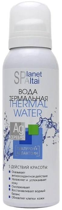 Thermal water Planet SPA Altai is a mineral water with a mineralization level of 5.5 mg eq / d3 and pH 8.3. Sulfates and chlorides of calcium, magnesium, sodium predominate in its composition, as well as boron, zinc and other minerals in small amounts. In addition, it is enriched with allantoin, sodium hyaluronate and colloidal silver. Regular use of the Planet SPA Altai product helps to maintain the water balance of the skin, soothes it. Allantoin acts as an antioxidant, hyaluronic acid moisturizes, colloidal silver acts as a conductor of useful components into the deeper layers of the skin, and also has an antibacterial effect.