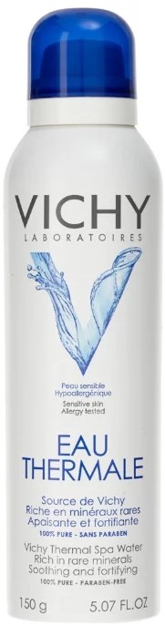 Vichy water is produced from water raw materials obtained from the Lucas spring, located in the center of France on the territory of a protected area. The source was formed in the bowels of an extinct volcano at a depth of 4 km, its temperature is 140ºС. Such unique conditions for the origin of the source, and its filtration through the deep layers of the earth's interior, enriched Vichy water with a huge amount of useful components. Due to this, it belongs to the highly mineralized hydrocarbonate (5200 mg/l). It contains 15 minerals and microelements, among which the most magnesium, potassium, silicon, calcium and sodium bicarbonates, fluorine, lithium, boron, etc. Due to its close to neutral acidity (6.8), regular use helps to normalize the pH of the skin, even after aggressive treatments. In addition, the product accelerates tissue regeneration. Although the manufacturer indicates that this product is suitable for all types, it is of great benefit to oily skin, because. successfully dries inflammation and removes oily sheen.