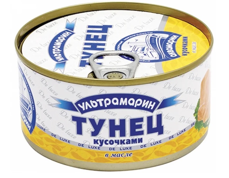 Such canned food from the Russian trademark "Ultramarine" is produced in Thailand and Indonesia. They come in a tin that has a key to open it. Thanks to this feature, the cans do not have to worry about the presence of an opener. The manufacturer produces these canned food in two versions: in oil and in its own juice. It is also worth noting that their packaging is very different, and this will not make it possible to confuse two different products.