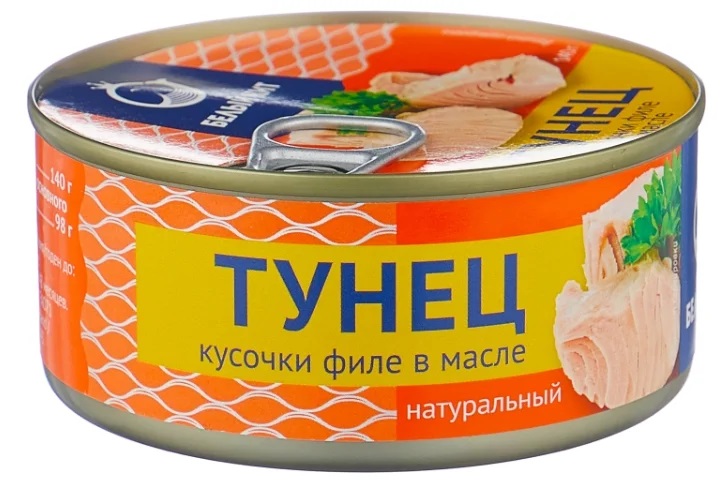 This product also comes to our country from Thailand. Its distinctive feature is its affordable price. And also, unlike other similar products, here you can find a large jar containing 1.7 kg of the finished product. If we talk about small jars, here the manufacturer produces fish already cut and in the form of fillet pieces. The sliced view is labeled "for salads", which simplifies the cooking process. Products from the trademark "Pelican" are in oil and their own juice. A small jar contains 185 grams of the finished product. The calorie content of the product in its own juice is 74 kcal, and in oil - 183 kcal.