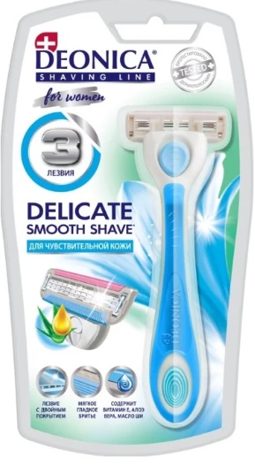 This razor has 3 blades that provide a comfortable process of hair removal. The cutting parts of this model have a double ceramic coating, thanks to which the product will retain its sharpness for a long time. This model is suitable even for sensitive skin, after use there will be no irritation and discomfort. The gel strip at Deonica 3 for women is impregnated with aloe, shea butter and vitamin E. Thanks to this, the razor will easily glide over the skin and cut off the hairs. The handle of the razor is made of plastic and has rubber inserts, thanks to which the product fits comfortably in the hand, and in the process it will not slip out.