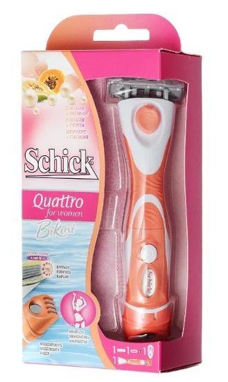 This product from the American brand "Schick" is designed specifically for the bikini area. The product has four blades, which are made of stainless steel. To protect the skin from cuts or scratches, the manufacturer has provided a special protective grille. To model the bikini area, there is a waterproof trimmer. The trimmer has an adjustable comb that is comfortable to use. For better gliding, there is a moisturizing strip that is soaked in jojoba oil and acai berries.The Schick Lady Quattro Bikini requires batteries to operate, which are not included with the device.