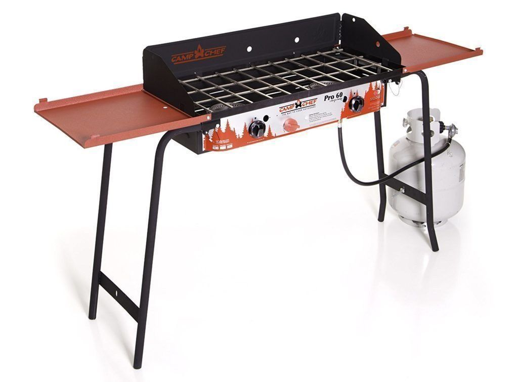 This gas burner has outstanding performance.Suitable for large groups of tourists, because it is equipped with impressive burners. Its power is 9 watts. With such a device, you can cook even the most delicious dishes. Comes with a handy corner table. You can also attach legs. With a power regulator, you can select the optimal temperature. There is such a burner 200 dollars.
