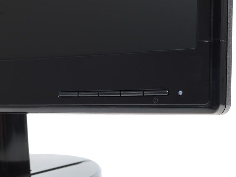 One of the budget models of the monitor. It has an anti-reflective coating. The manufacturer claims a response of 5 ms. Comes with a wall mount. Manufactured from thick black plastic. The control buttons are located on the frame at the bottom center.