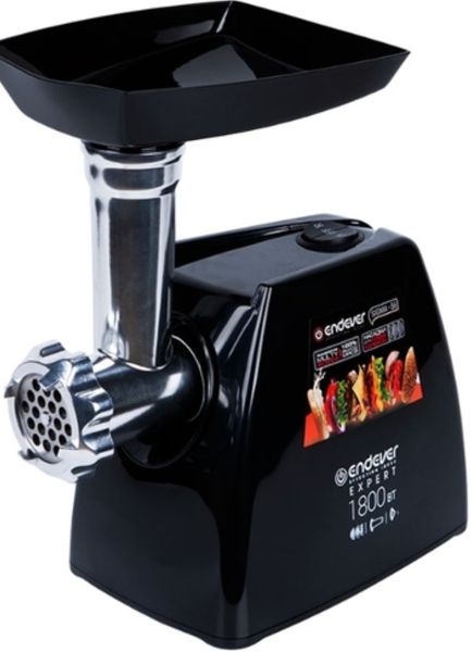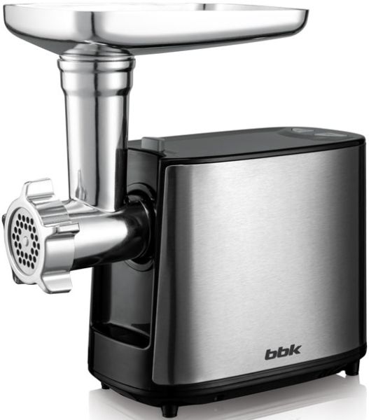 The model with a high power rating of 1800 W and a productivity of 2.3 kg / min is equipped with a reverse system, 5 nozzles for sausages, minced meat and kebe, as well as a compartment for storing them. The length of the power cord is 1 meter. The overall dimensions of the equipment are 24.5x25.2 cm. The body is made of metal and plastic, the trays are metal. The stability of the meat grinder during the working process is ensured by rubberized legs.