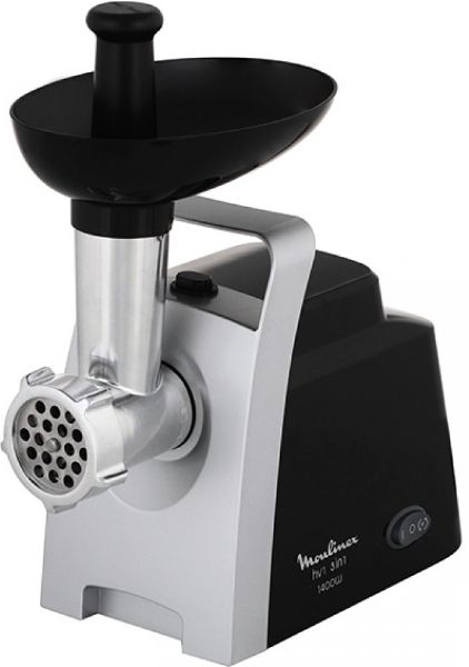 The manufacturer equipped the model with a whole set of nozzles: the box contains three perforated discs for cooking minced meat (with large, medium and small holes), a nozzle for making kebbe and homemade sausages. Therefore, with this meat grinder it is possible to make a variety of meat and stuffed dishes.