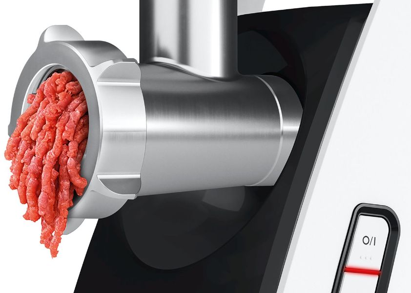 The model comes with 2 discs with holes of different sizes in order to thoroughly grind large pieces. Among other things, there are attachments for preparing delicious kebbe and mouth-watering homemade sausages.