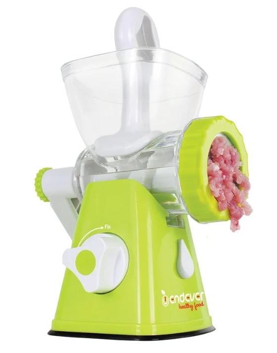 The modern development of stainless steel and high-strength food-grade plastic is designed for various types of meat, fish, vegetables, fruits and even nuts. Fixation on the surface is carried out due to the rubber bottom, creating a vacuum between it and the table. The machine is easy to disassemble and assemble. Due to the transparent parts, you can fully control the cooking process.