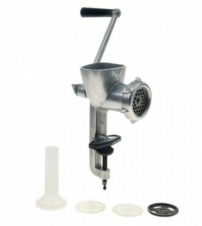 This category includes classic models of manual use. Their main advantage is low cost and long service life. Despite the fact that electrical installations are in great demand among buyers, there are people who still prefer manual meat grinders. Since they do not require power supply, they do not create noise during the work process, and they also allow you to leave the equipment unattended for a long time if you need to leave urgently.