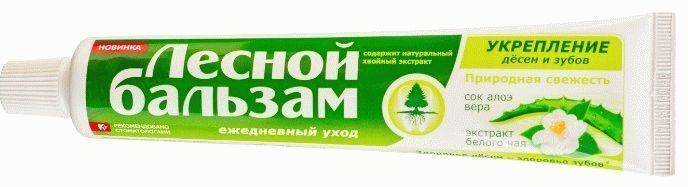 Toothpaste perfectly helps with bleeding gums, refreshes the oral cavity. Forest balm "Forte Active" contains tea tree oil, which allows you to increase the protection of teeth and mucous membranes from harmful bacteria.