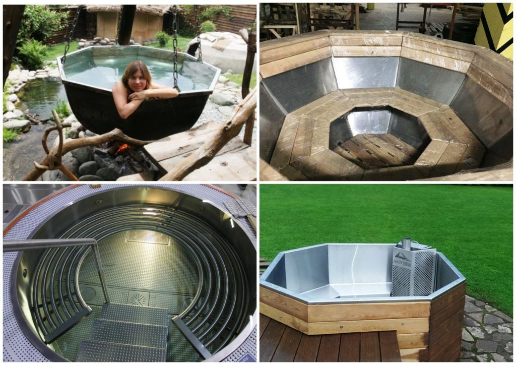 En règle générale, ce sont des récipients ovales, avec des poignées et d'autres pièces métalliques. Ce conteneur est plus difficile à installer que le plastique ou le bois. Le principal avantage est que l'eau maintient la température réglée pendant longtemps. Le métal est le plus hygiénique, facile à nettoyer, aucun séchage spécial n'est requis.