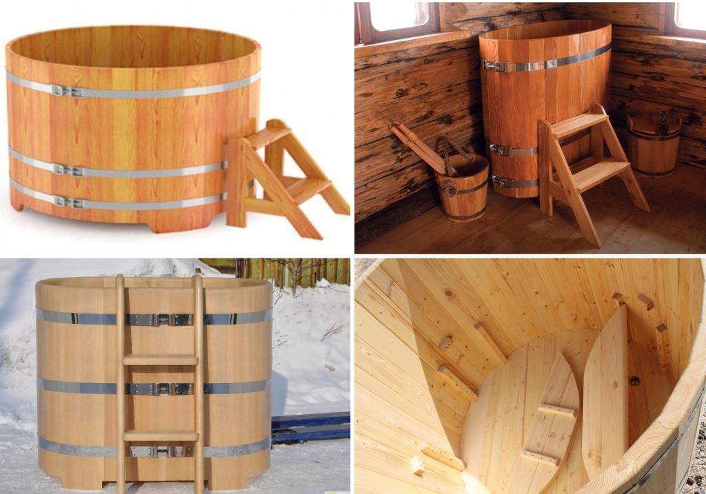 L'expression la plus courante est le fût de chêne. Pendant des siècles, la baignade a été effectuée dans un tel. D'abord brun clair, il s'assombrit avec l'eau et la température au fil des ans. Ceci est une autre confirmation du matériau naturellement naturel, qui n'affecte pas l'utilité des procédures d'eau.